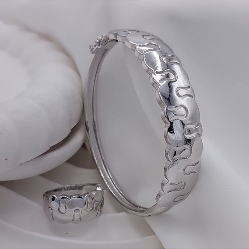 دستبند و انگشتر ست قفلی ابکاری فول طلا سفید