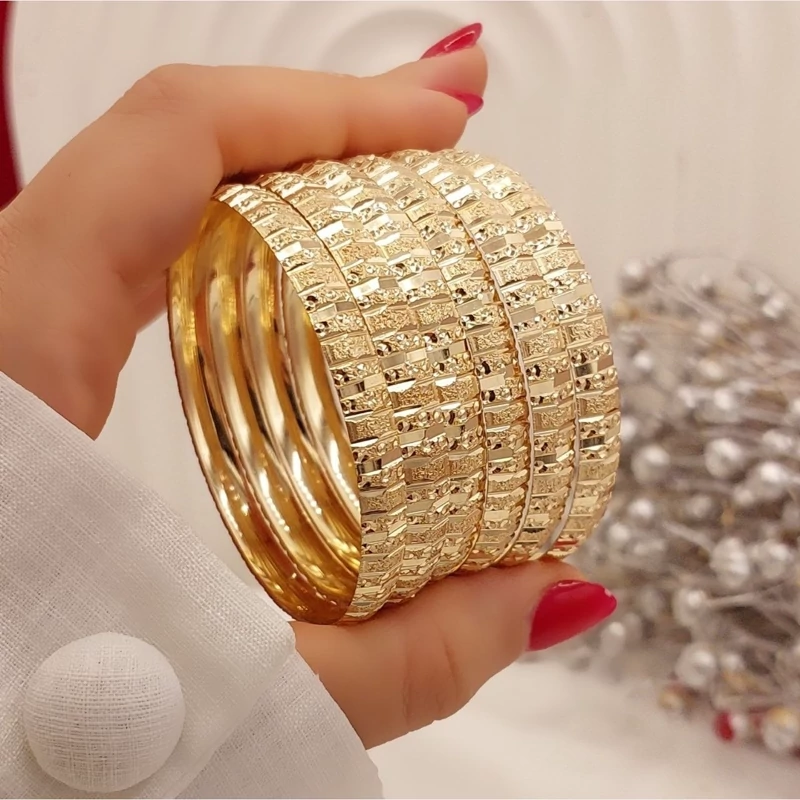 انگشتر و دستبند بحرینی رنگ ثابت ابکاری طلا