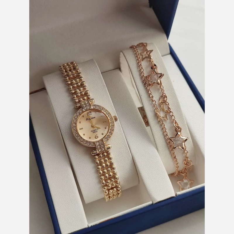 دستبند و ساعت ست رنگ ثابت ضد اب ابکاری طلا