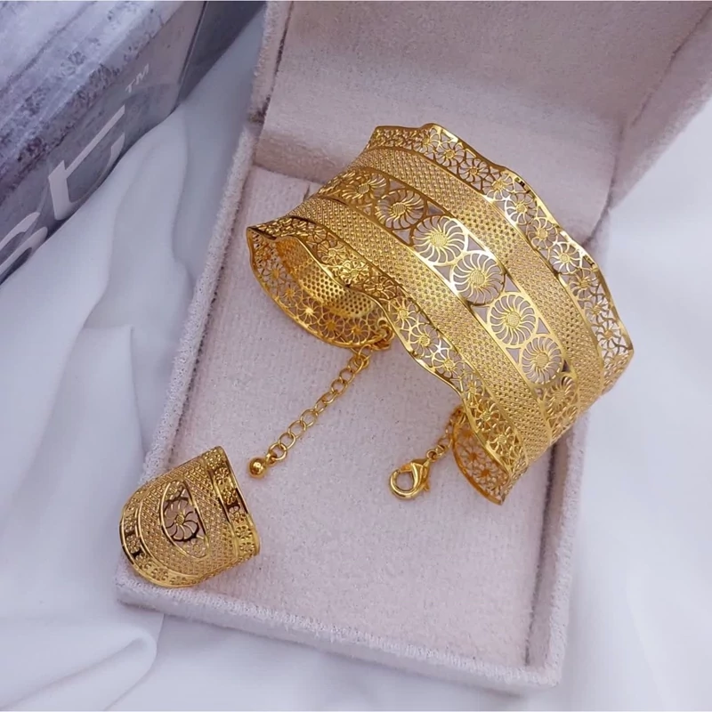 انگشتر و دستبند بحرینی رنگ ثابت ابکاری طلا