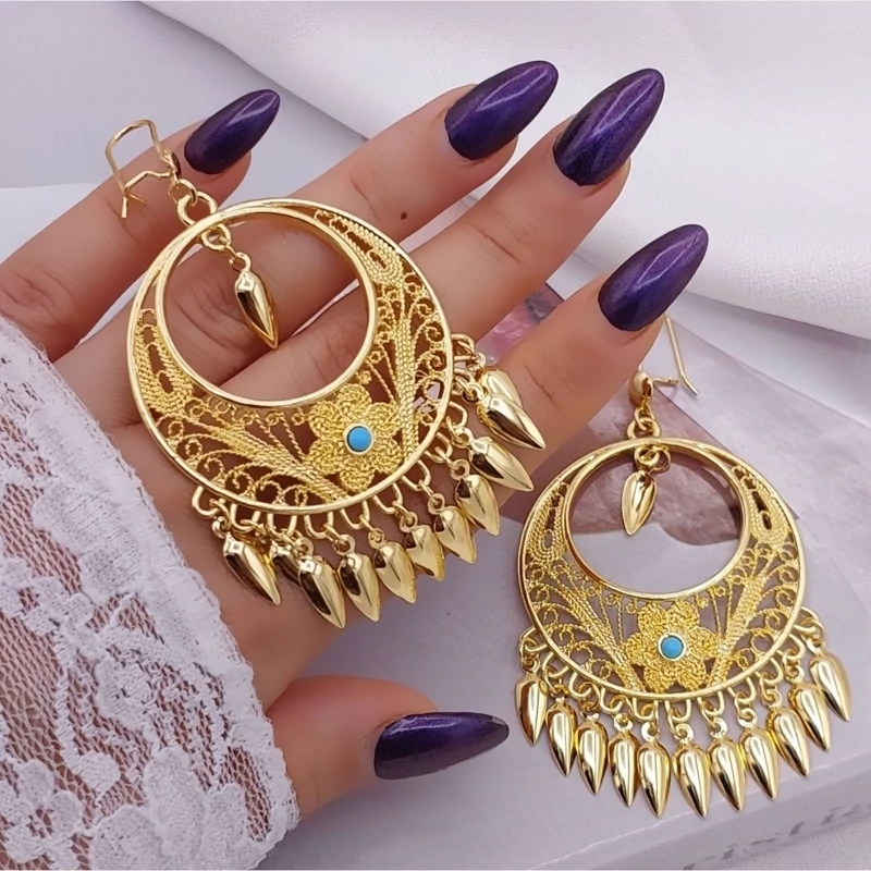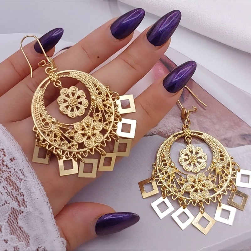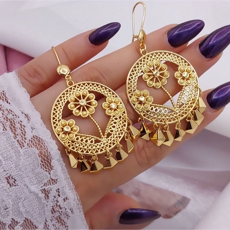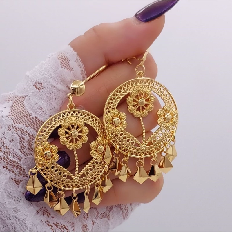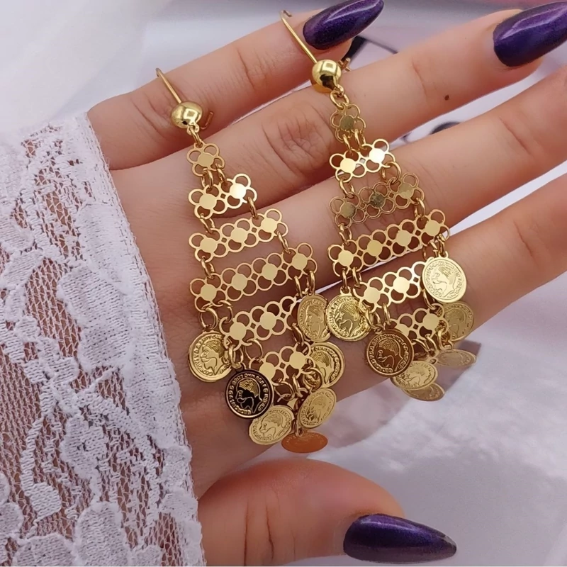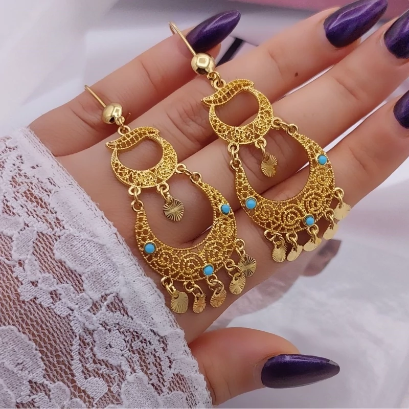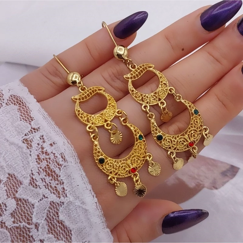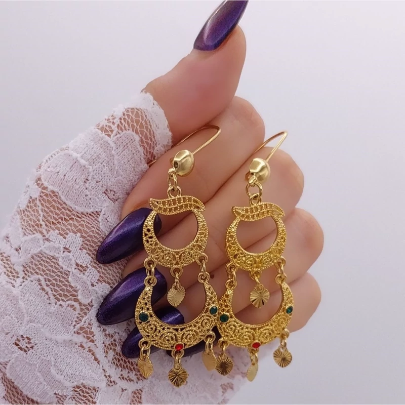 گوشواره بحرینی رنگ ثابت ابکاری طلا