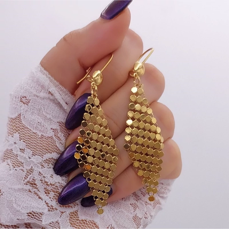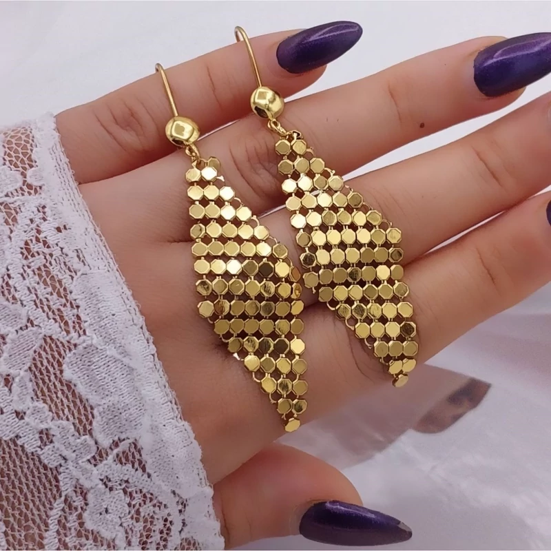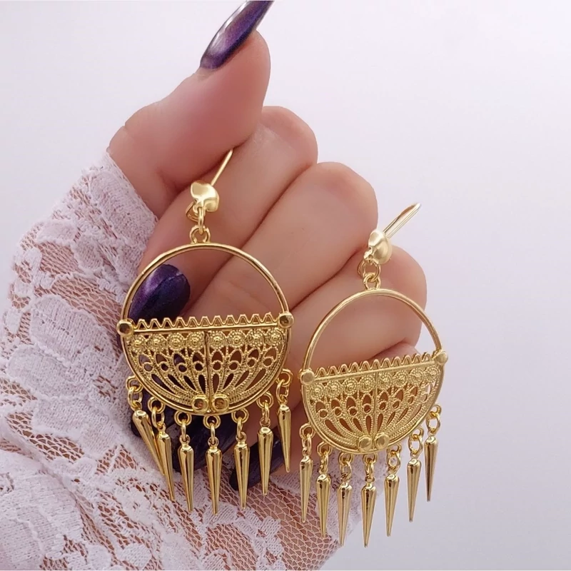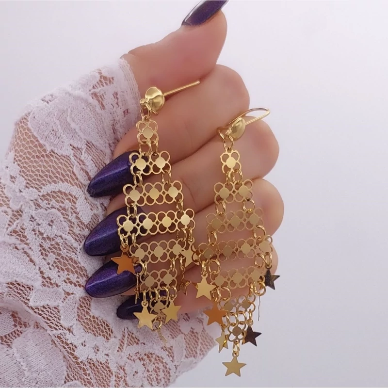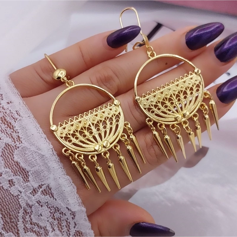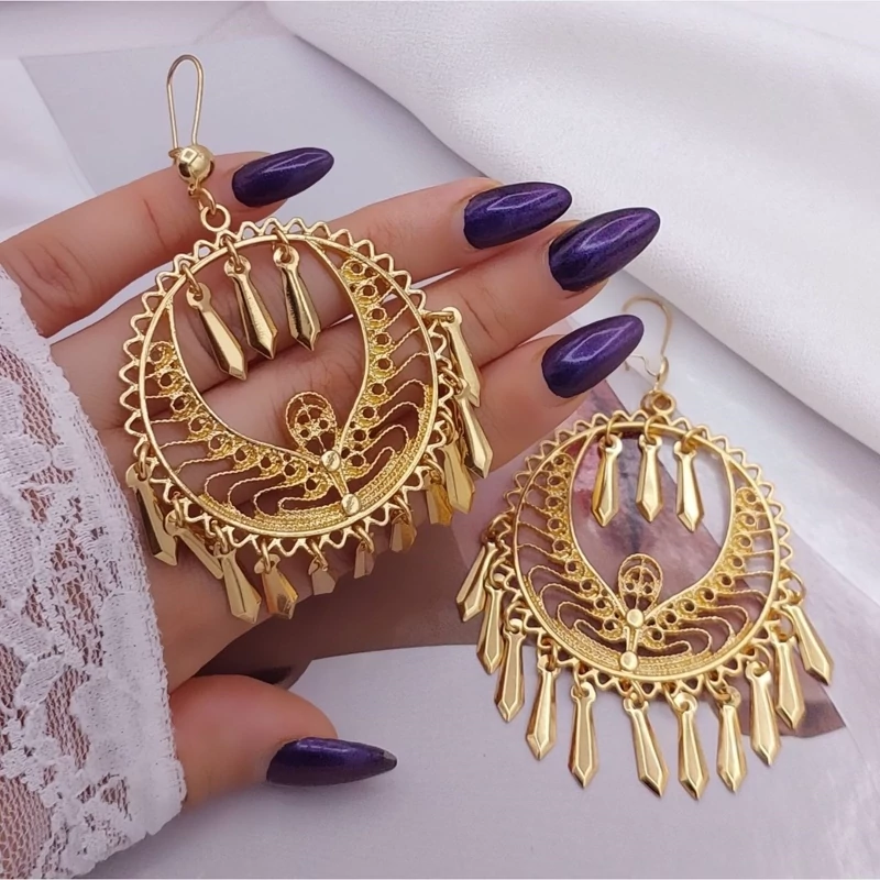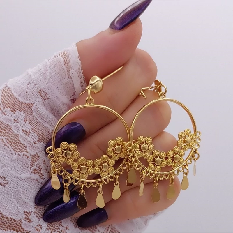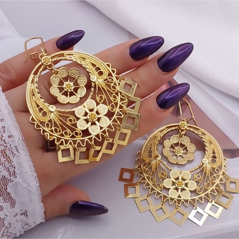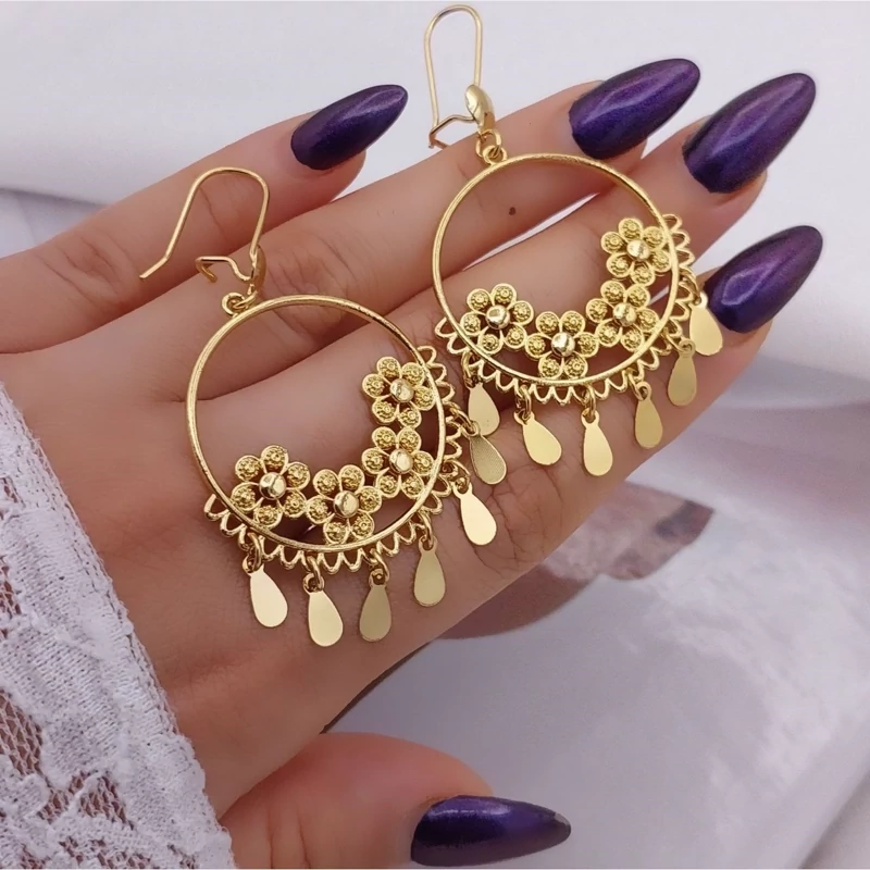 گوشواره بحرینی رنگ ثابت ابکاری طلا